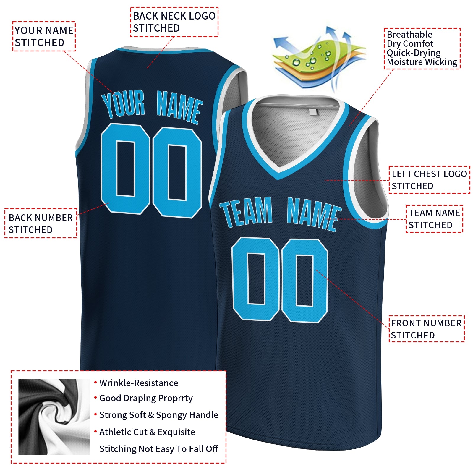 Custom Dark Blue Blue-White V-Neck Basketball Jersey