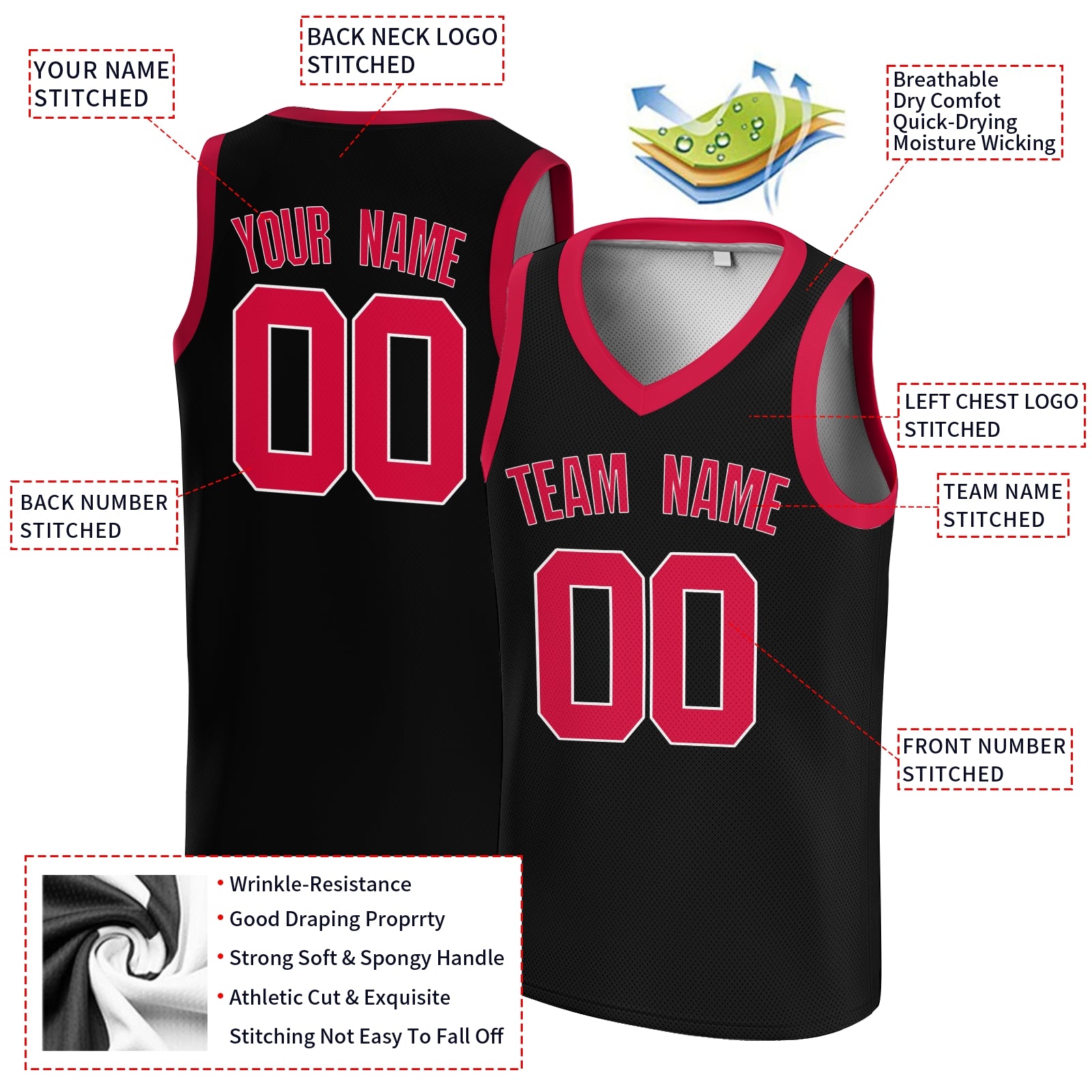 Custom Black Cerise-White V-Neck Basketball Jersey