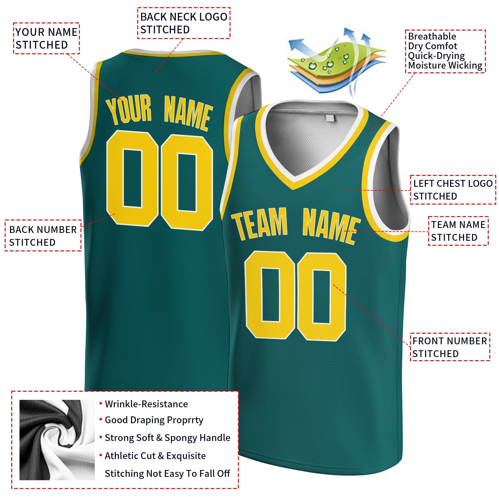 Custom Blackish Green Yellow-White V-Neck Rib-Knit Basketball Jersey