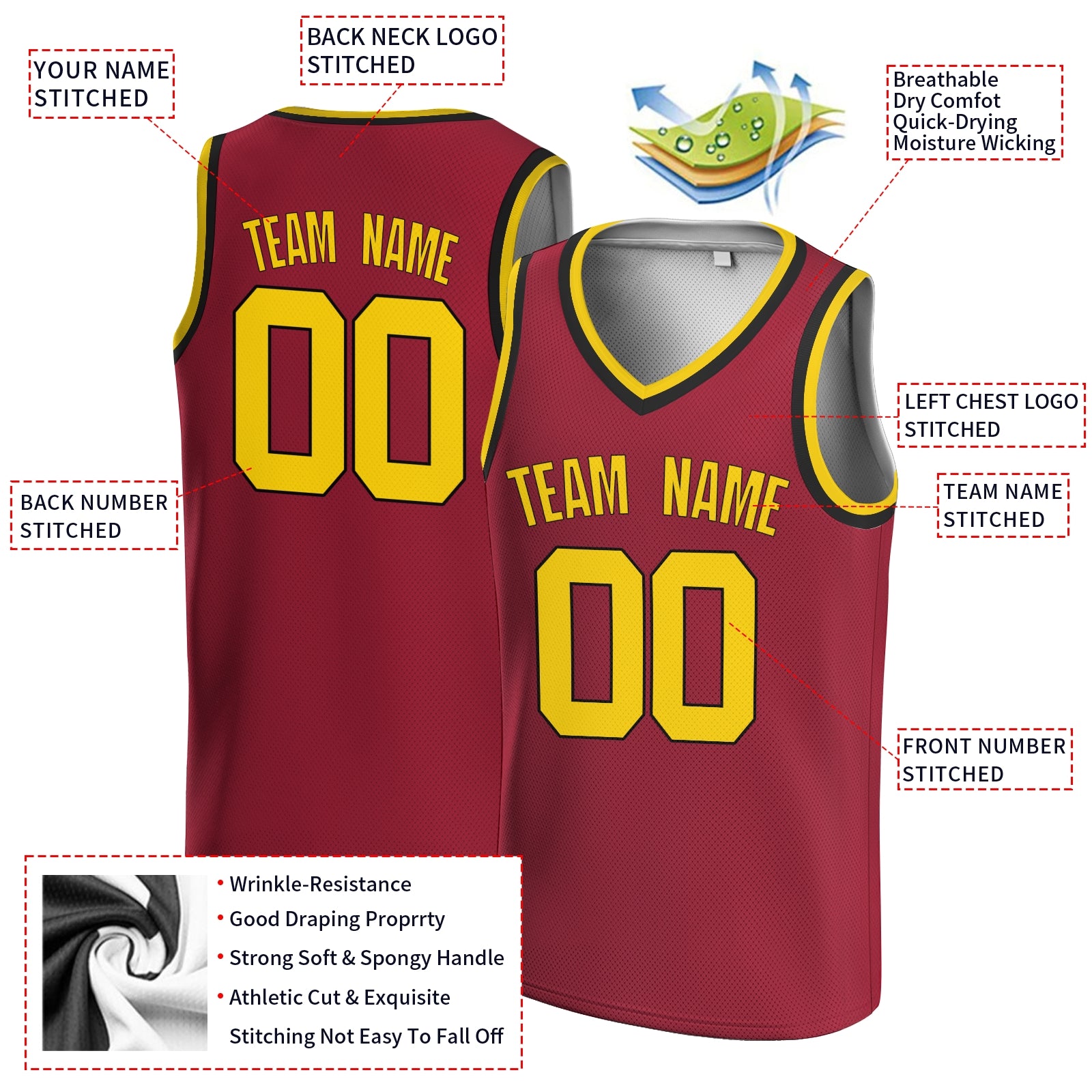 Custom Red Yellow-Black V-Neck Basketball Jersey