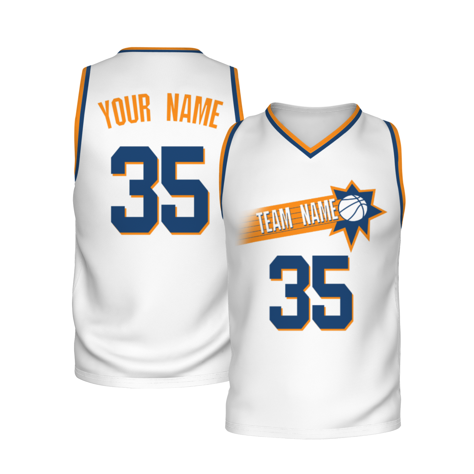 Custom White Dark Blue-Orange Authentic V-Neck Basketball Jersey